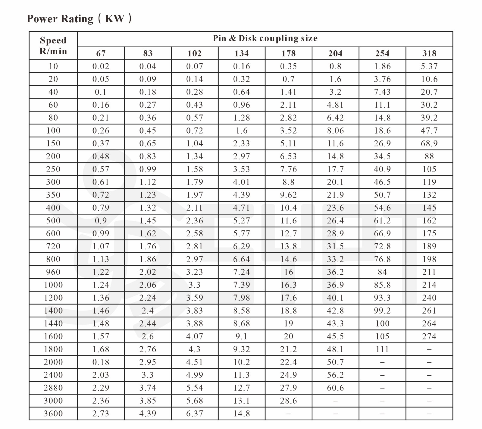 Product parameters