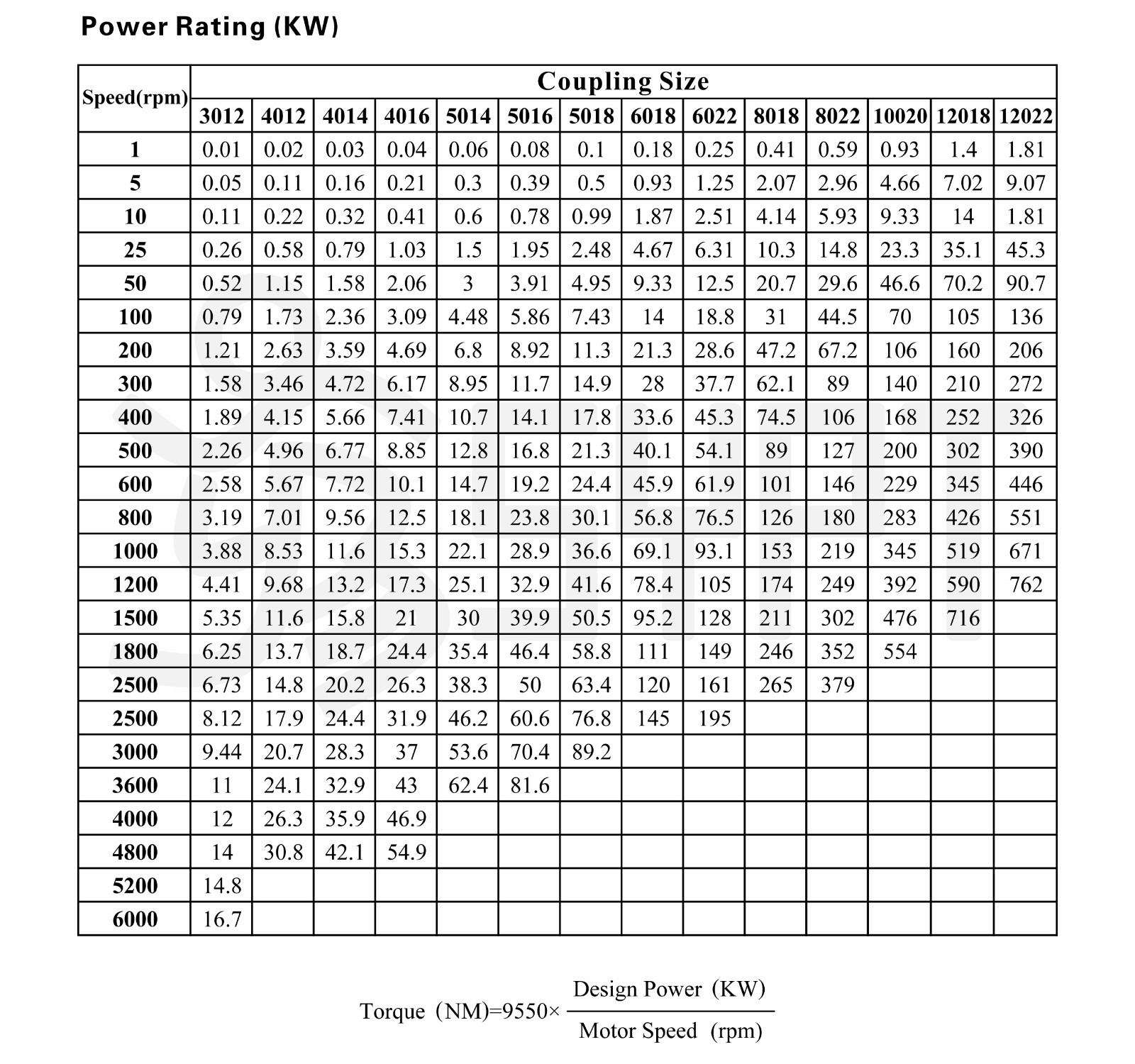 Product parameters