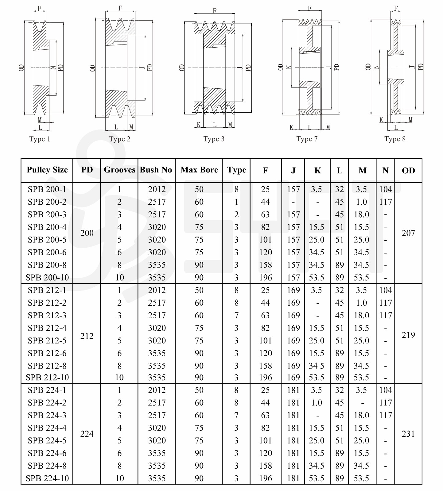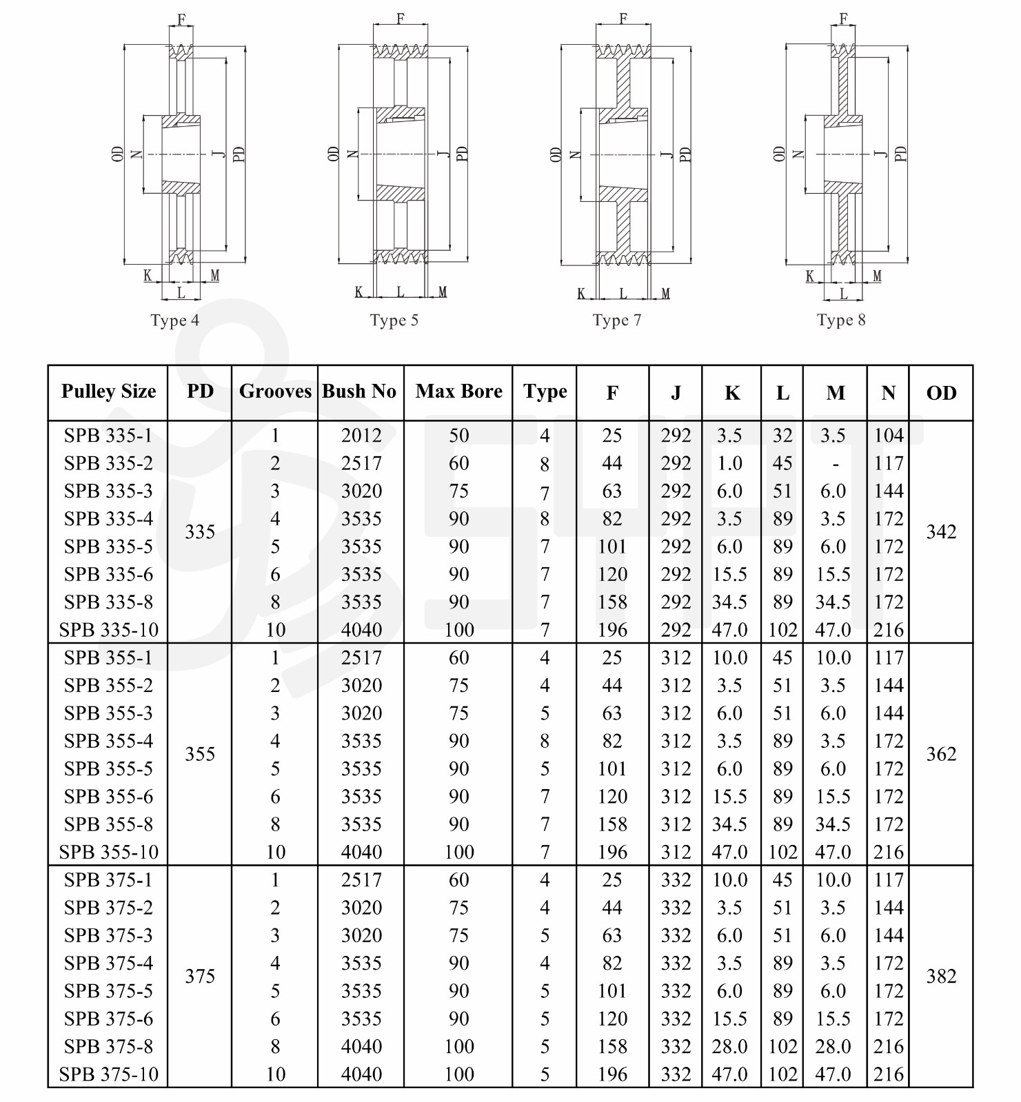 Product parameters